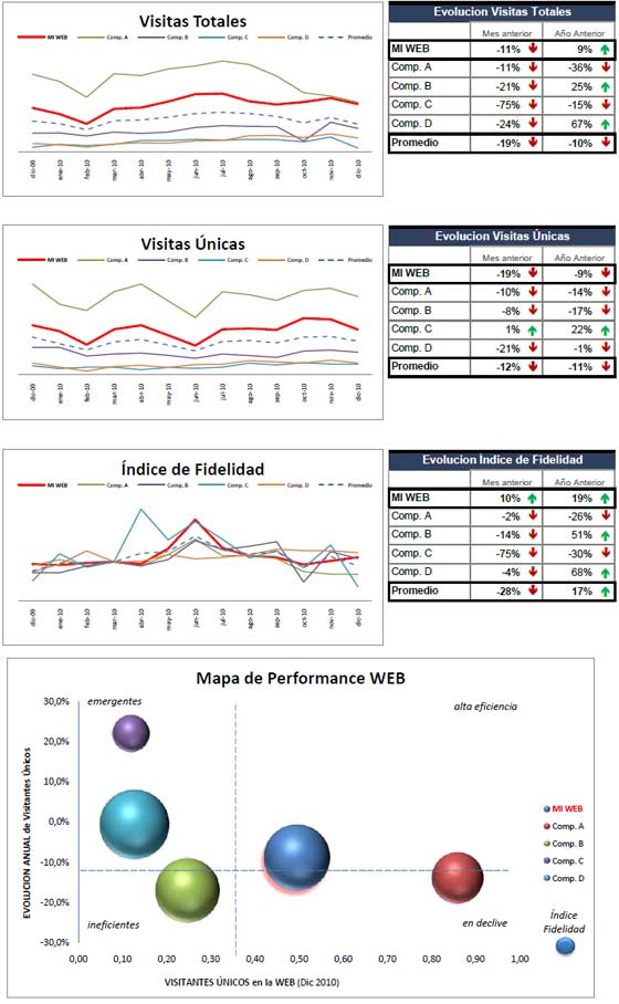 El panorama en los medios digitales está cambiando. Y España no es diferente. 22.000.000 son los usuarios españoles que buscan información y ofertas en Internet. En el mundo de los negocios online, el cambio está garantizado. Las empresas avanzan, nuevas ideas fluyen, los productos evolucionan, los competidores redefinen sus estrategias de promoción y los clientes se mueven en búsqueda de nuevas y mejores soluciones. Nada permanece estable en la Red. En este contexto, si no sabes lo que hace tu competencia en Internet, ¿Cómo puedes saber si tu negocio online es realmente eficiente? ¿Quieres saber si alguien lo ha hecho antes?... Solo a través de la referencia con la competencia obtendrás el parámetro real de la efectividad de tus acciones y tú verdadero posicionamiento online: